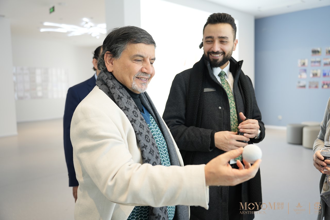 12月11日上午,来自沙特阿拉伯的Ibrahim、AlmasriRola等阁下率沙特医疗代表团抵达上海,开启中沙丝路情共创医美未来——幽抚兰国际美学体验交流之旅。首先沙特访问团参观了摩漾生物集团总部,详细了解了摩漾生物的公司发展历程、历代科技创新产品、高新科技专利技术以及幽抚兰新品在行业中的突出表现力。访问团和摩漾董事长林光明先生热情交换了带有各自国家传统文化特色的礼物。