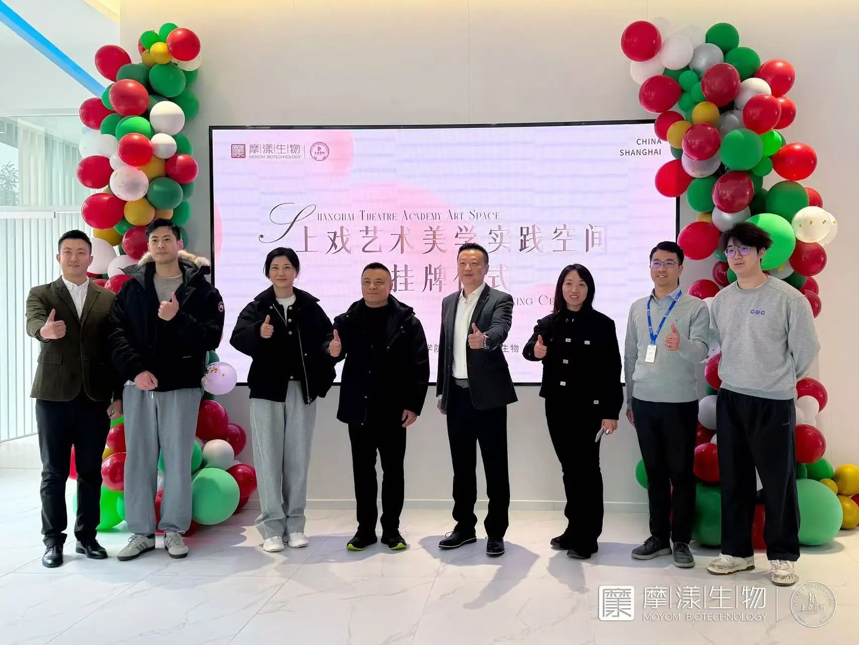 2024年12月19日上午,摩漾生物与上海戏剧学院在上海闵行区摩漾总部大楼举行了“上戏艺术美学实践空间”挂牌仪式,标志着双方在艺术美学实践领域的深度融合迈出了重要一步。上海戏剧学院党委副书记,副院长张伟令先生和摩漾生物董事长林光明先生一同为“上戏艺术美学实践空间“揭幕,上戏资产管理公司总经理、上戏艺术发展有限公司董事长盛思梅女士,上戏艺术发展有限公司常务副总经理孙文杰先生等出席仪式。